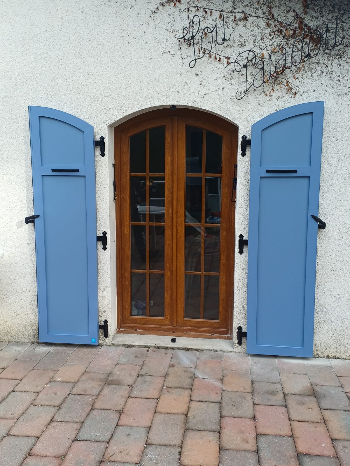 - Conservation des gonds : Si vos gonds sont scellés chimiquement et en bon état, nous pouvons souvent les conserver pour éviter d’abîmer la façade, grâce à des pentures réglables.